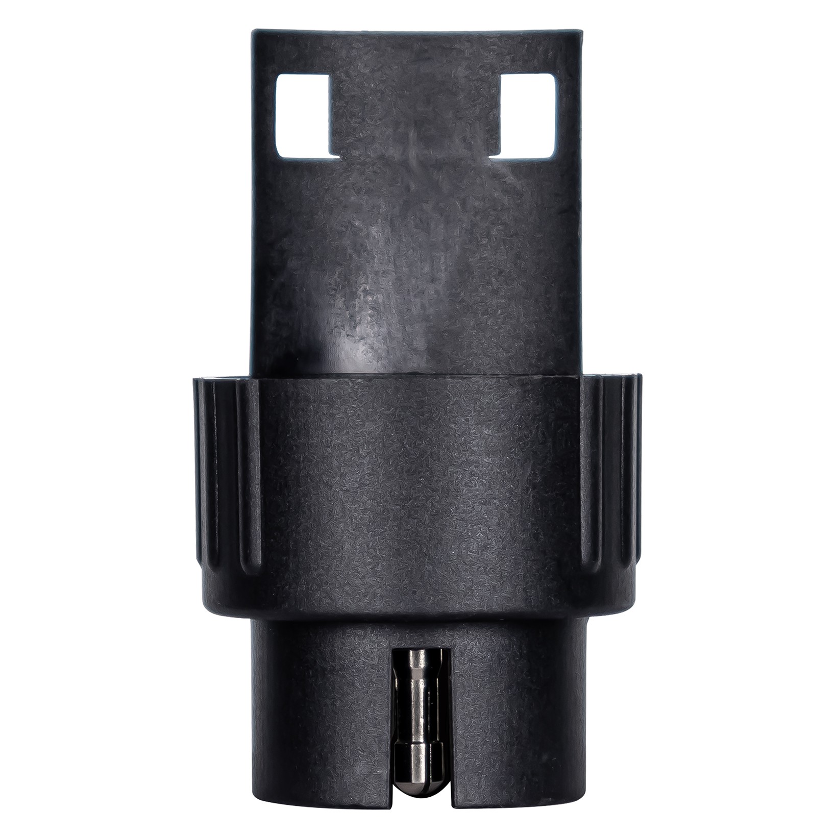 Adapter E1338 rozwiązuje problem różnic w standardach elektrycznych między pojazdem a naczepą. Przekształca 7-pinowe gniazdo w pojeździe na 13-pinowe gniazdo w adapterze, co pozwala na bezproblemowe połączenie naczep nowej generacji.