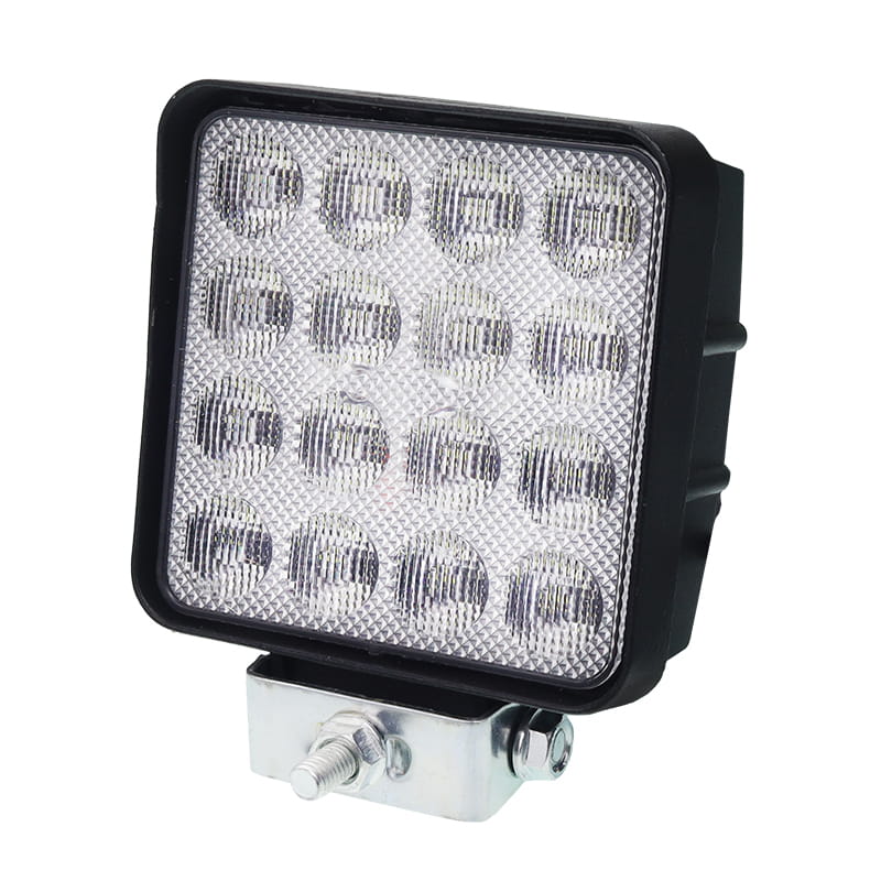 Mocna, kwadratowa lampa robocza LED o boku 107 mm, wyposażona w 16 wydajnych diod. Generuje strumień świetlny o mocy 2000 lumenów, który dzięki optyce typu SPOT tworzy skupioną wiązkę światła o dużym zasięgu. Solidna aluminiowa obudowa o grubości 55 mm zapewnia doskonałe chłodzenie, a szeroki zakres napięcia 12-36V pozwala na montaż w niemal każdym pojeździe – od aut terenowych po ciężki sprzęt budowlany.