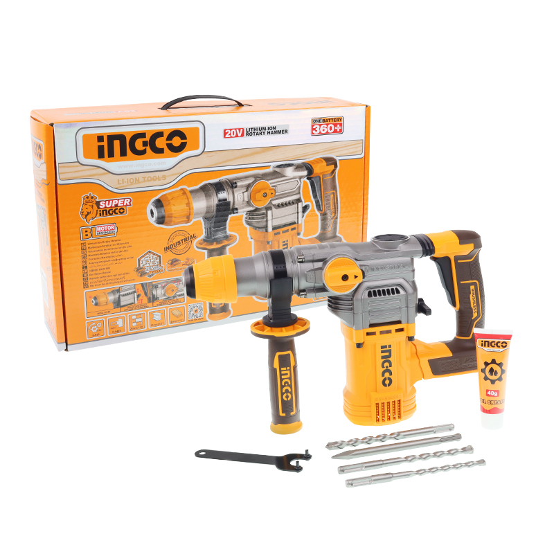 Mimo że bateria i ładowarka są sprzedawane osobno (co pozwala na wykorzystanie już posiadanych akumulatorów 20V z tej samej serii lub dobranie idealnego zestawu zasilającego), młotowiertarka jest dostarczana z niezbędnymi akcesoriami, aby od razu rozpocząć pracę: