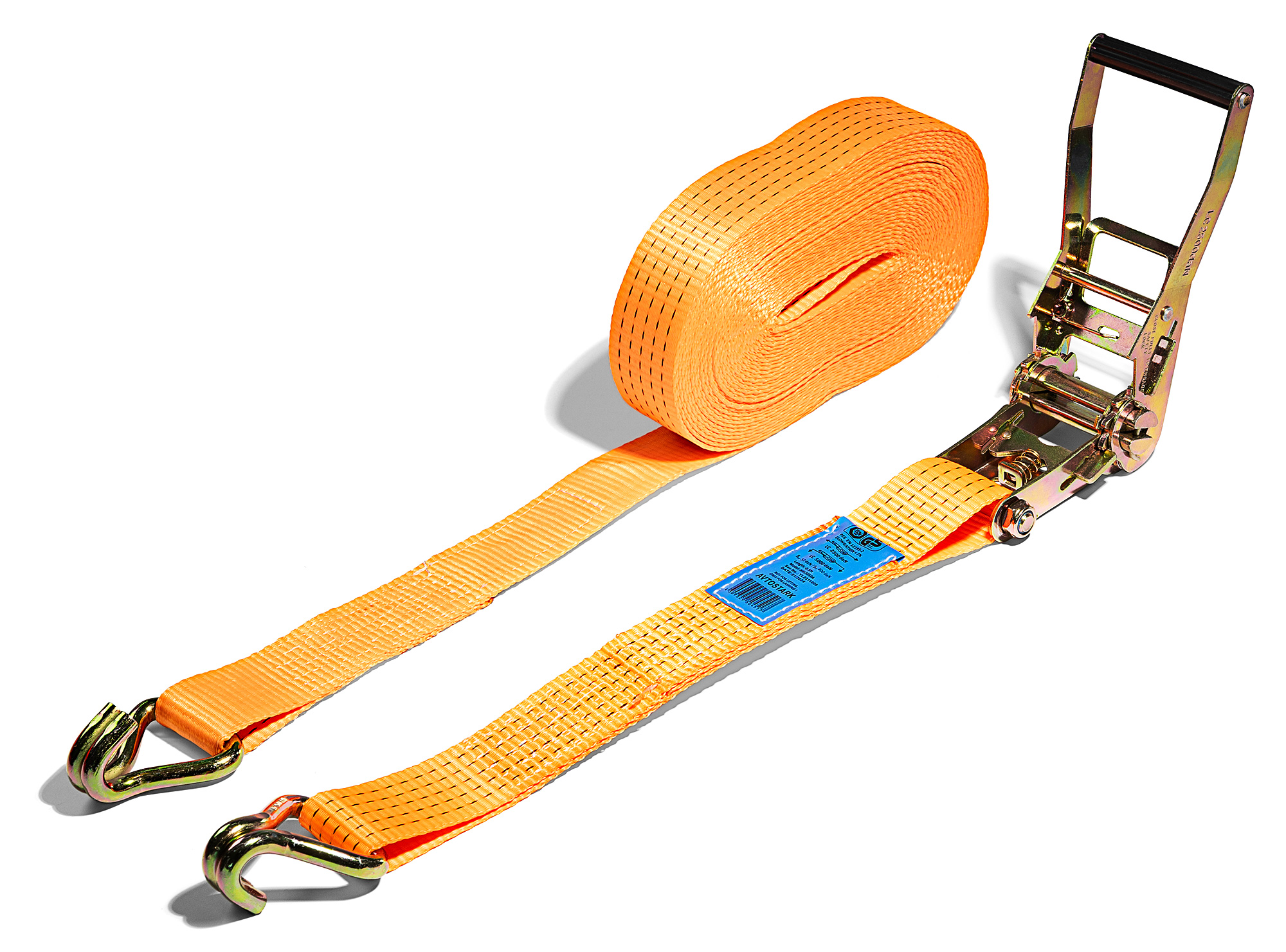 Pas mocujący o szerokości 50 mm, długości 16 metrów i wytrzymałości 5 ton, jest atestowanym pasem transportowym, spełnia europejską normę EN12195 oraz posiada certyfikat GS i TUV.