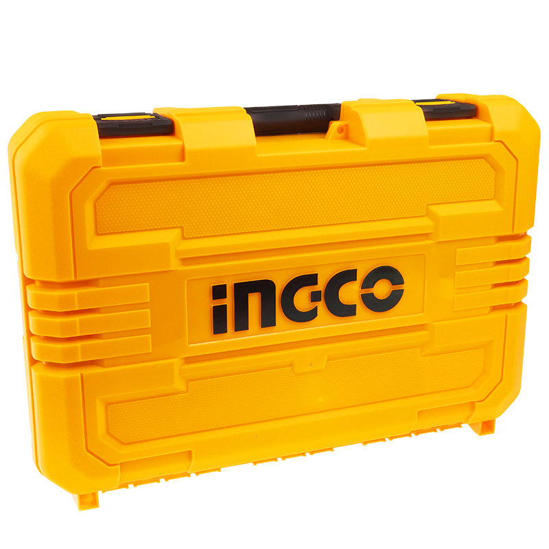 Cały komplet jest pakowany w praktyczną walizkę transportową, która zapewnia bezpieczne przechowywanie narzędzia i akcesoriów, chroniąc je przed uszkodzeniami i ułatwiając transport.