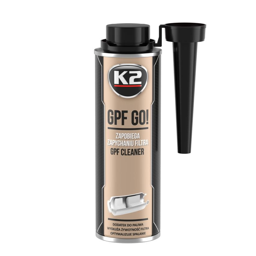 K2 GPF Go! 250ml to dodatek do benzyny, stworzony z myślą o skutecznej ochronie filtra cząstek stałych GPF (ang. Gasoline Particulate Filter). Jego zadaniem jest wyłapywanie sadzy powstałej podczas spalania we współczesnych silnikach benzynowych.
