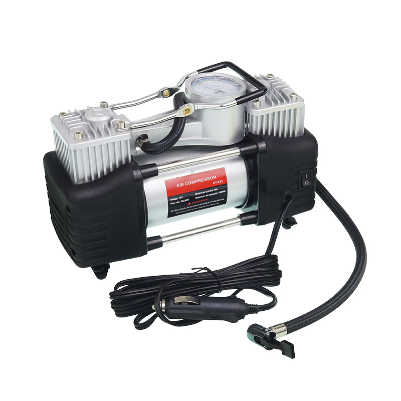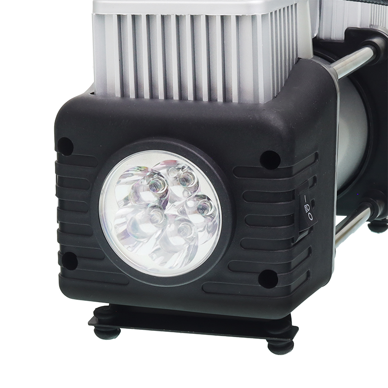 KOMPRESOR DO POMPOWANIA POW.12V 90L/MIN Z MANOMETREM DO 10BAR/ATM DWUTŁOKOWY, FUNKCJA LATARKI, 2,1 KG