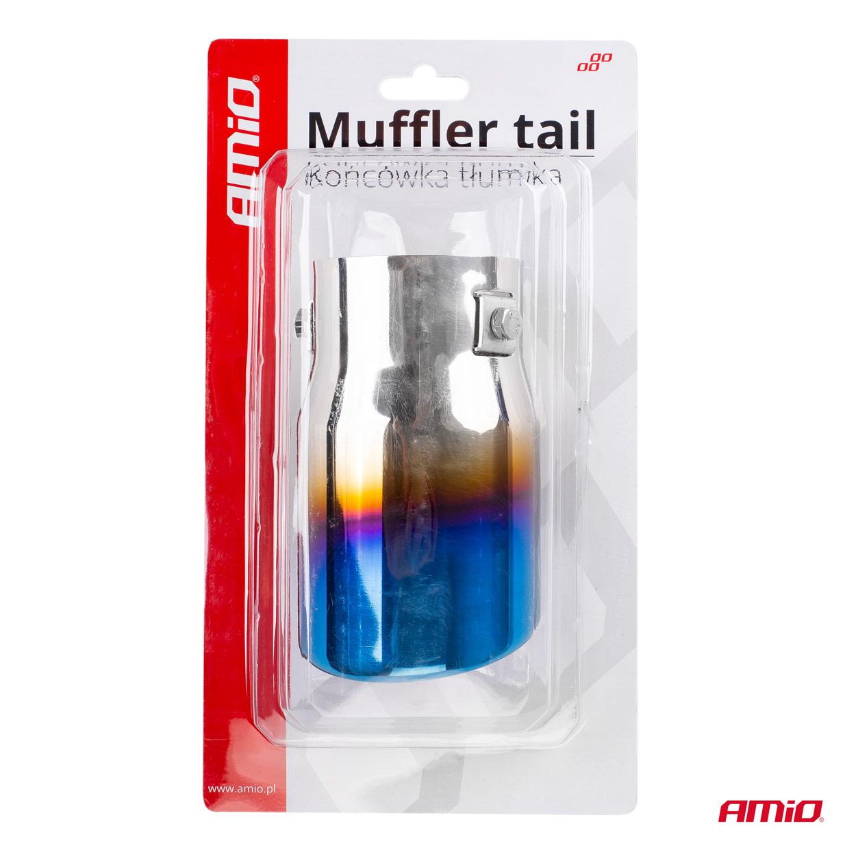 Końcówka tłumika, chrom z niebieskim wykończeniem wykonana ze stali nierdzewnej kwasoodpornej model MT017BLC.