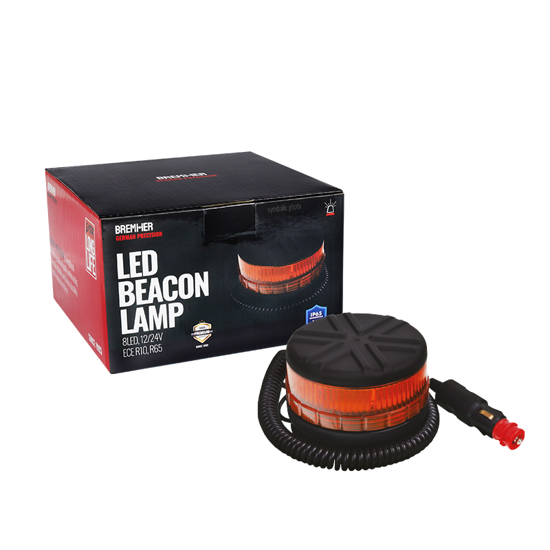 LAMPA OSTRZEGAWCZA "KOGUT" NISKA, MAGNES, 8 LED, 12/24V, ECE R10, R65, WYSOKOŚĆ 60MM, PRZEWÓD Z WTYCZKĄ DO GNIAZDA ZAPALNICZKI