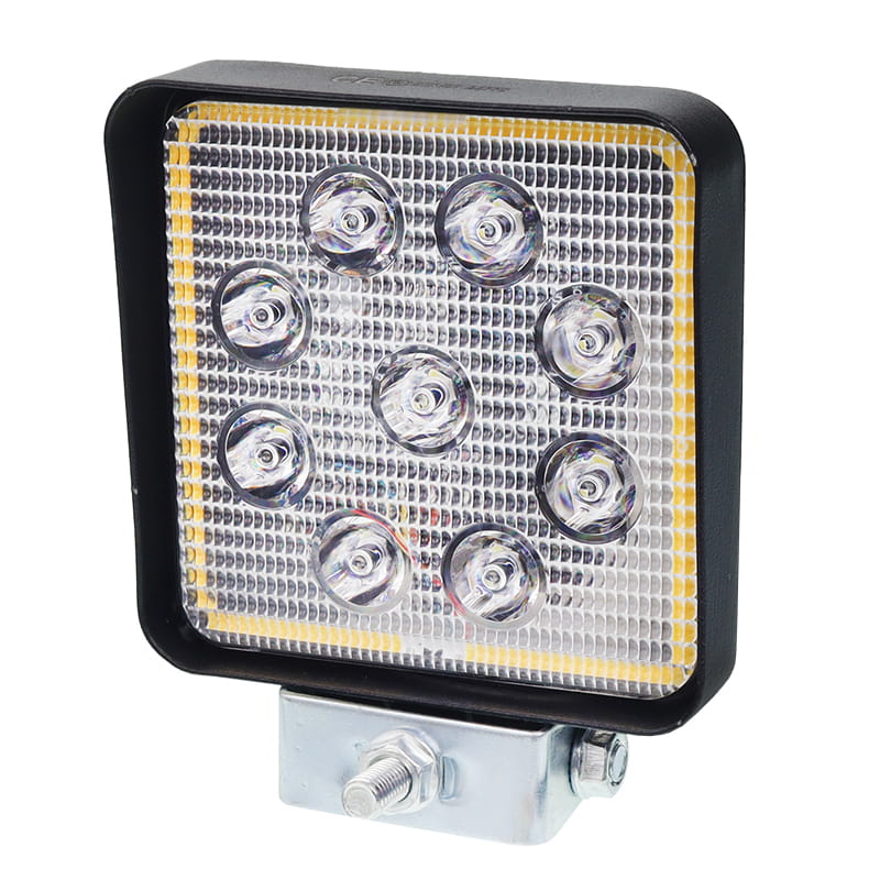 Wydajna, kwadratowa lampa robocza LED o wymiarach 109x109 mm, wyposażona w 9 wysokiej klasy diod. Dzięki mocy strumienia świetlnego na poziomie 2200 lumenów oraz skupionej wiązce światła typu SPOT, lampa doskonale doświetla odległe punkty, ułatwiając pracę w trudnych warunkach nocnych. Solidna aluminiowa obudowa, klasa szczelności IP67 oraz pełna homologacja gwarantują niezawodność i bezpieczeństwo użytkowania w rolnictwie, transporcie i budownictwie.