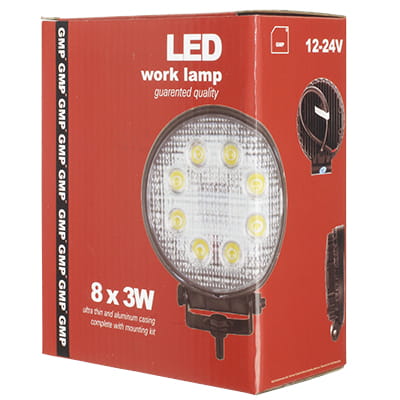 Komplet dwóch wydajnych, okrągłych lamp roboczych LED o średnicy 83 mm. Każda lampa wyposażona jest w 4 wysokiej jakości diody, generujące strumień świetlny o mocy 600 lm. Dzięki solidnej aluminiowej obudowie, szerokiemu zakresowi napięcia 10-30V oraz europejskiej homologacji E9, zestaw ten stanowi niezawodne oświetlenie pomocnicze dla maszyn rolniczych, pojazdów terenowych oraz aut dostawczych.