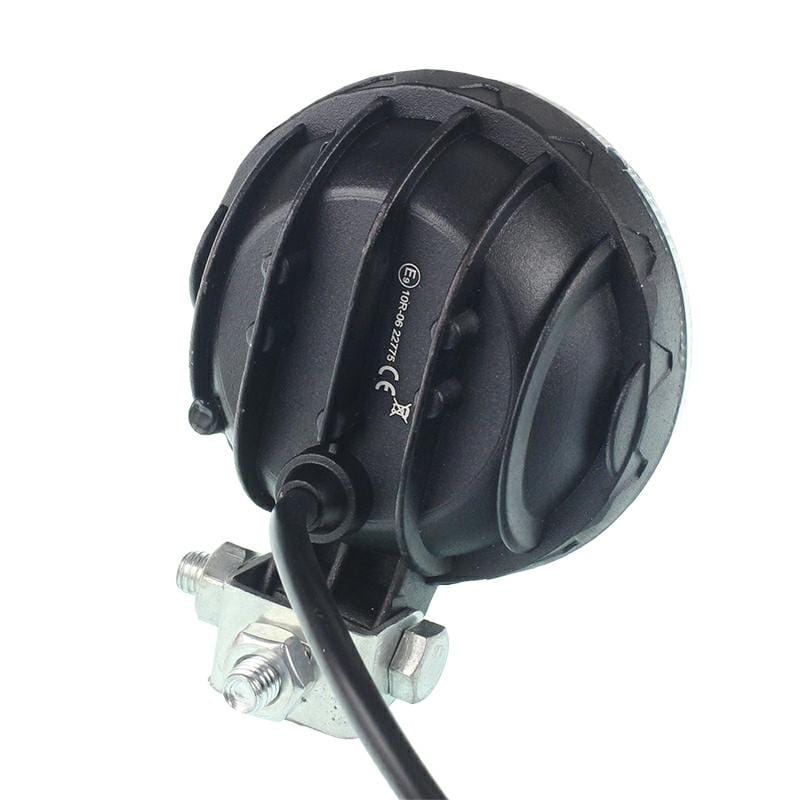 Wytrzymała lampa robocza LED Ø90mm z 5 diodami, światło skupione. Obudowa aluminiowa, wodoodporność IP67. Zasilanie 10-30V, barwa 6500K, żywotność 50 000h, homologacja E9. Idealna do SUV-ów, ciężarówek, maszyn rolniczych i budowlanych.