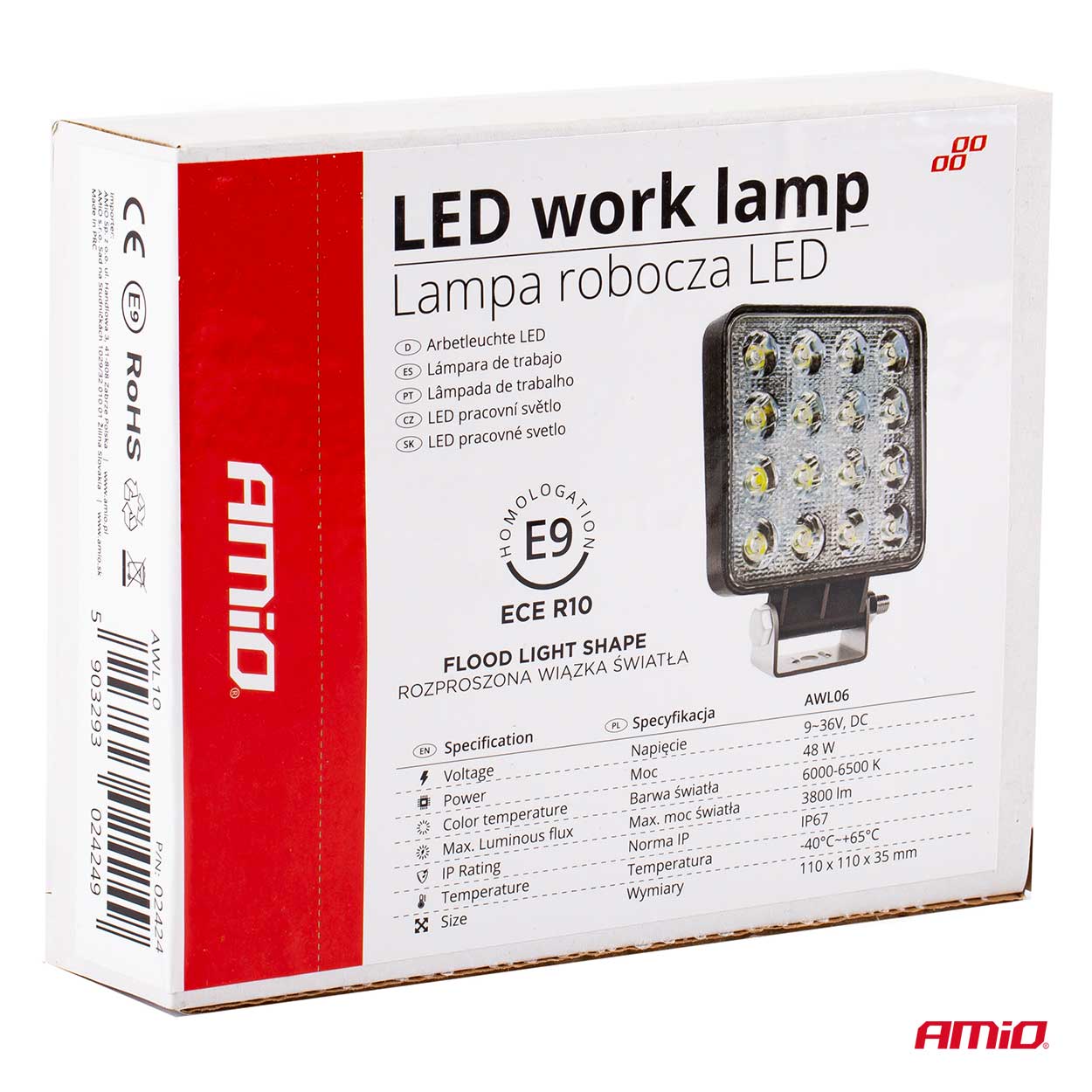 Lampa robocza LED szperacz AWL10 16LED 12V 24V AMIO-02424