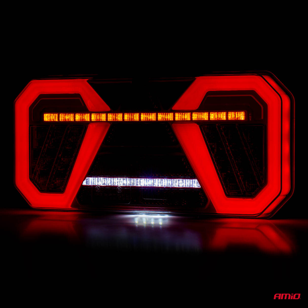 Dynamiczny kierunkowskaz natomiast to efekt wędrującego światła kierunku jazdy w którym każda z diod zapala się z nieco większym opóźnieniem. Lampa może pracować w instalacjach 12V jak i 24V, posiada homologacje kompatybilności elektromagnetycznej i stopień ochrony IP 67. Prawdopodobnie jest to najładniejsza lampa na rynku.