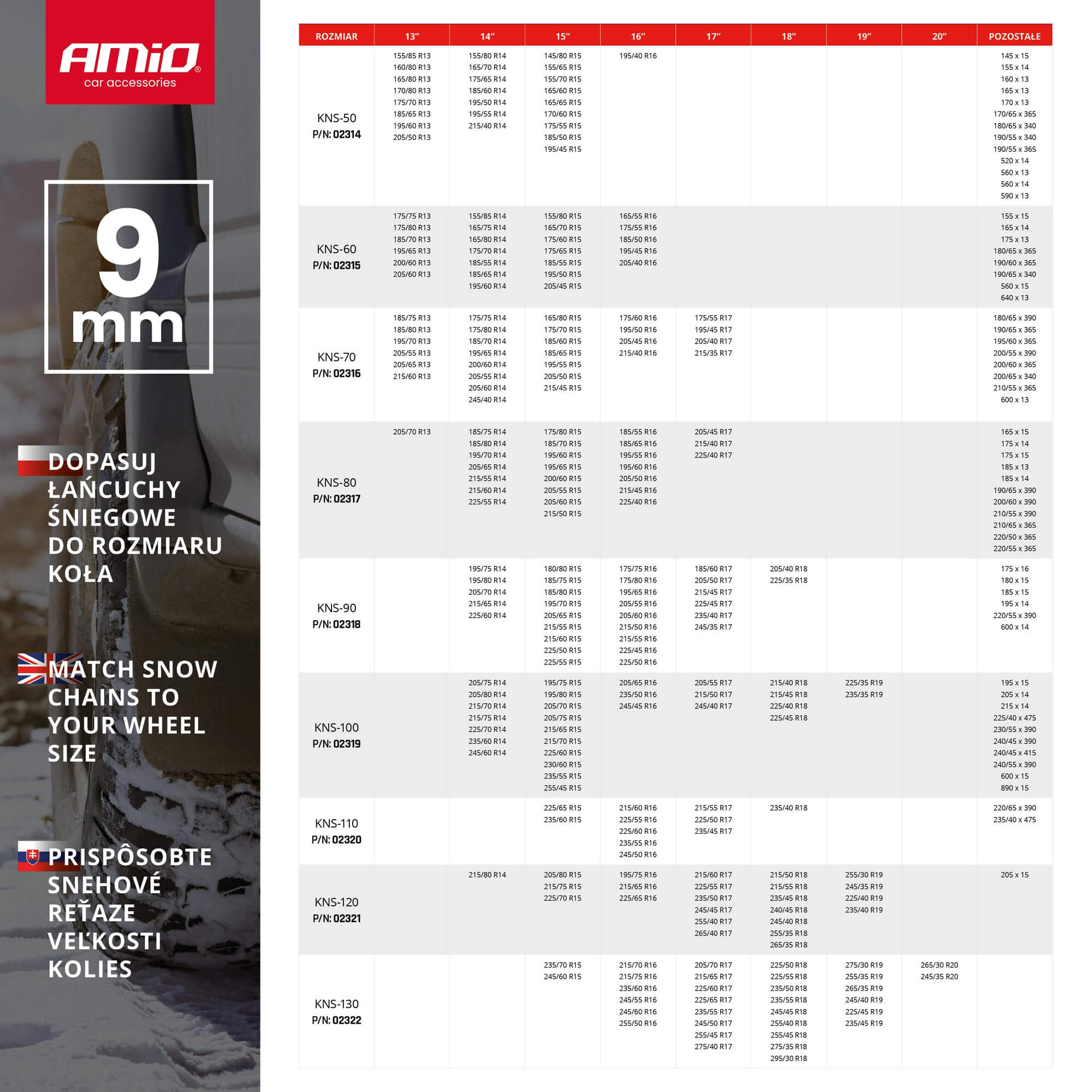 Łańcuchy śniegowe Ö-Norm 9mm + BAG KNS-90 AMIO-02318