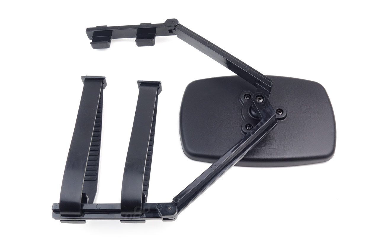 - Umieść podwójne uchwyty lusterek na konwencjonalnym lusterku samochodowym, wyreguluj i zapnij gumowe paski na zewnątrz lusterka.