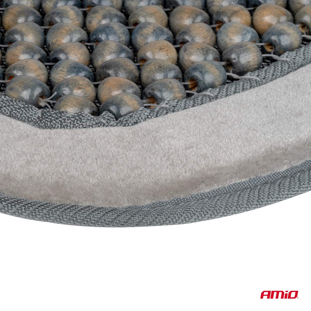 Mata na siedzenie z drewnianych koralików, zwiększa komfort podróży. Wspomaga układ krążenia, a co za tym idzie zmniejsza poczucie zmęczenia. Struktura koralików zapewnia mikrowentylację oraz przynosi ulgę dla pleców. Obrzeża zostały wykonane z miękkiego weluru (pluszu). Może być stosowana w pojazdach wyposażonych w boczne poduszki powietrzne. Mocowanie maty za pomocą gumki. Rozmiar: długość całkowita 90cm, szerokość siedziska i oparcia 44cm.