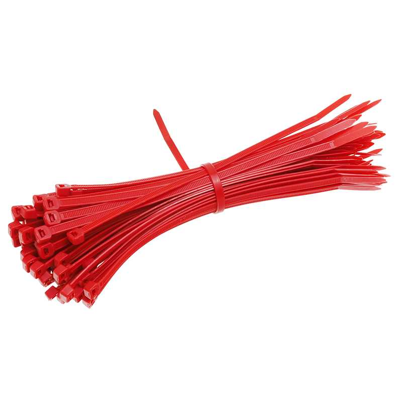 OPASKI ZACISKOWE 350X4,8MM - CZERWONE PLASTIKOWE, 100SZT/OPAKOWANIE, TRYTYTKI