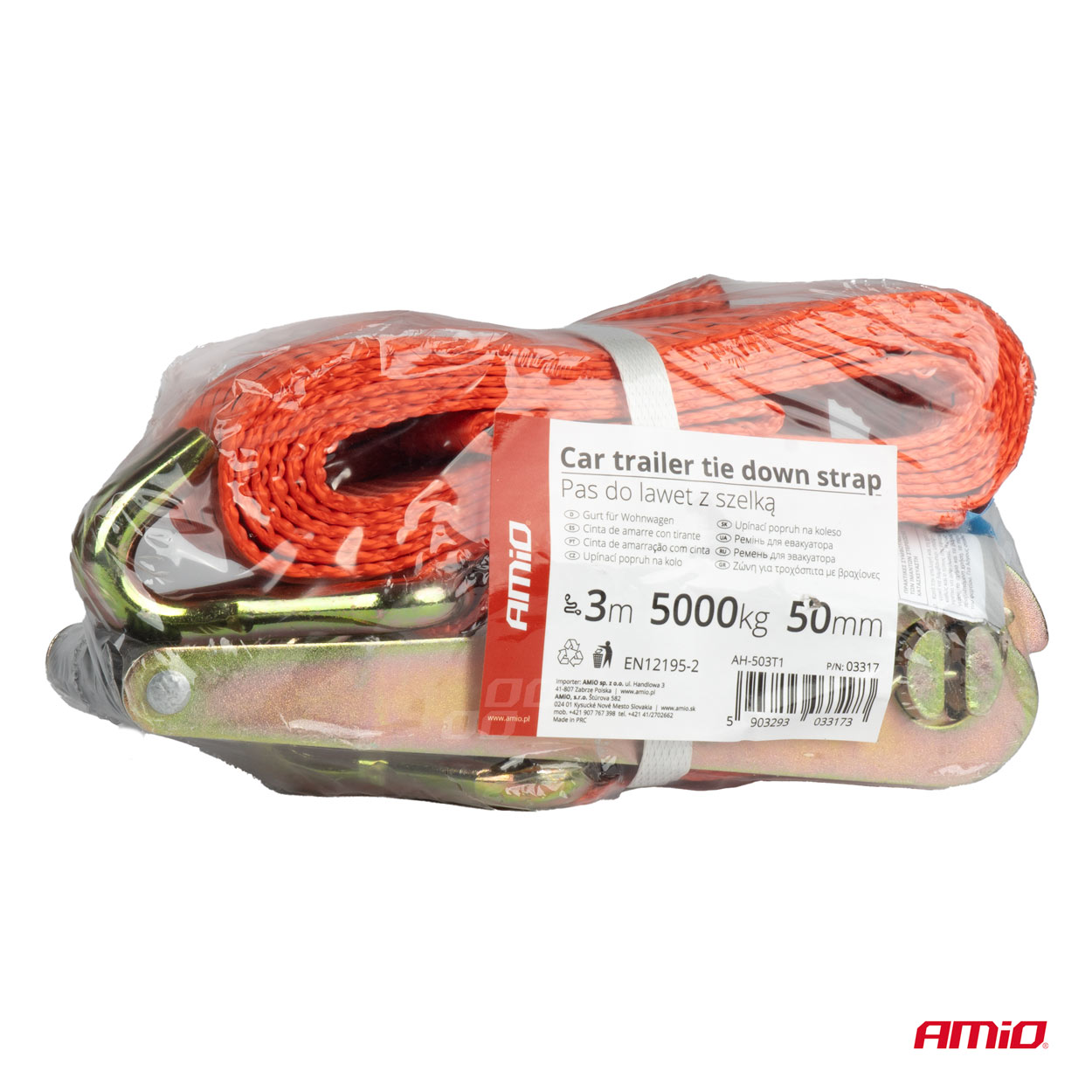 Pas transportowy z napinaczem i szelką 5T 5000kg 50mm 3m AMIO-03317