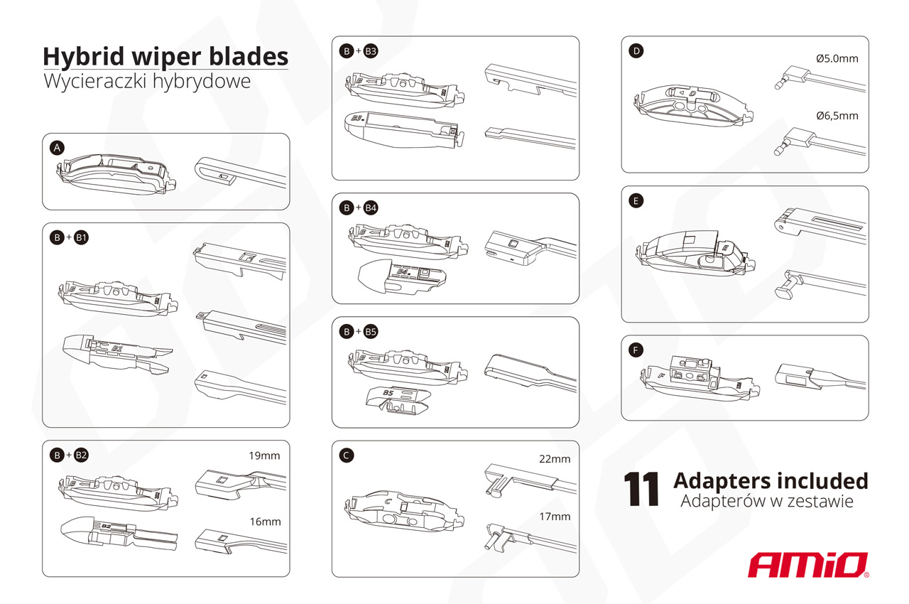 Pióro wycieraczki AMiO Hybrid multiconnect 17" 425mm 42,5cm 11 adapterów AMIO-02204