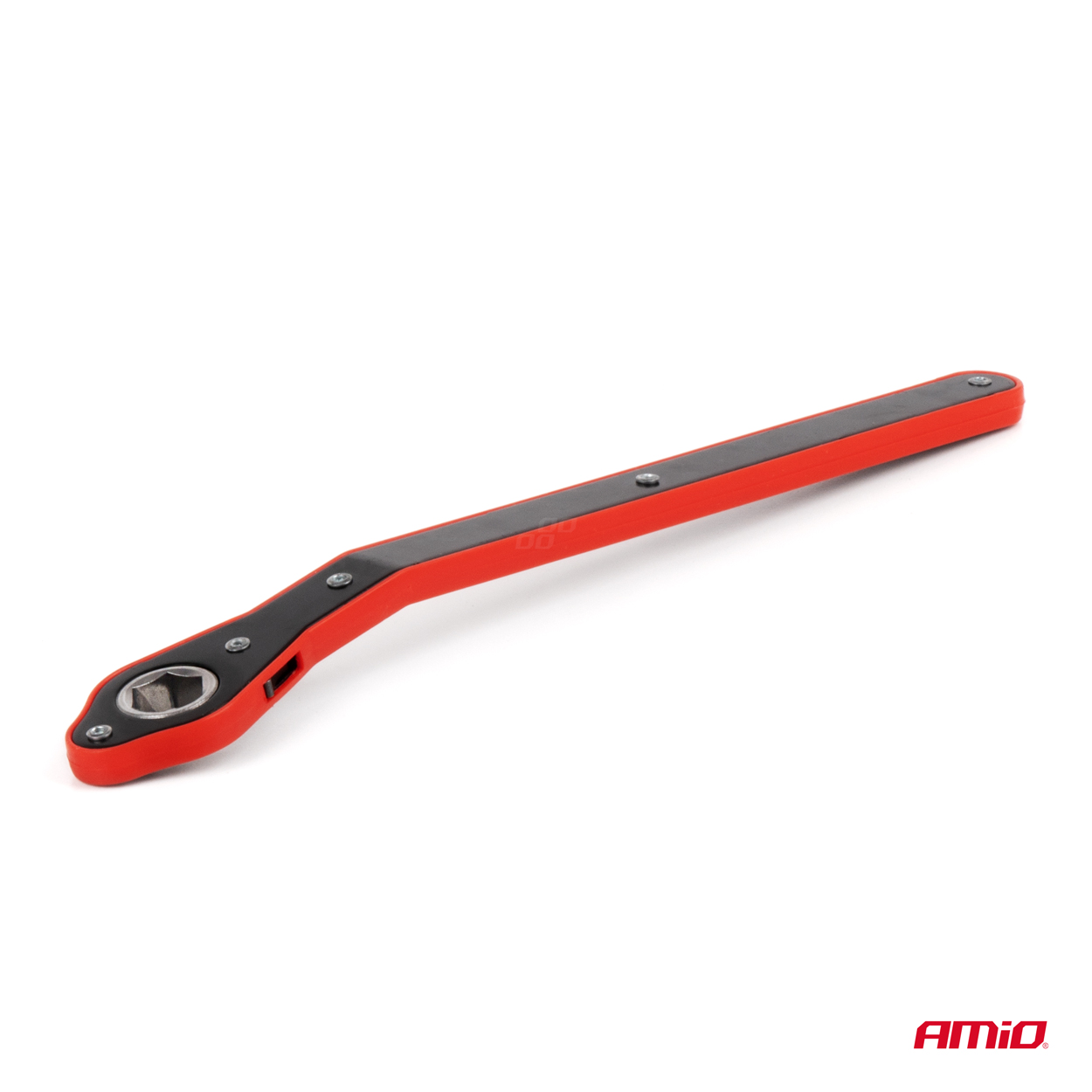 Podnośnik posiada dedykowany klucz typu grzechotka z przełącznikiem kierunku obrotów, co znacznie przyspiesza obsługę lewarka.