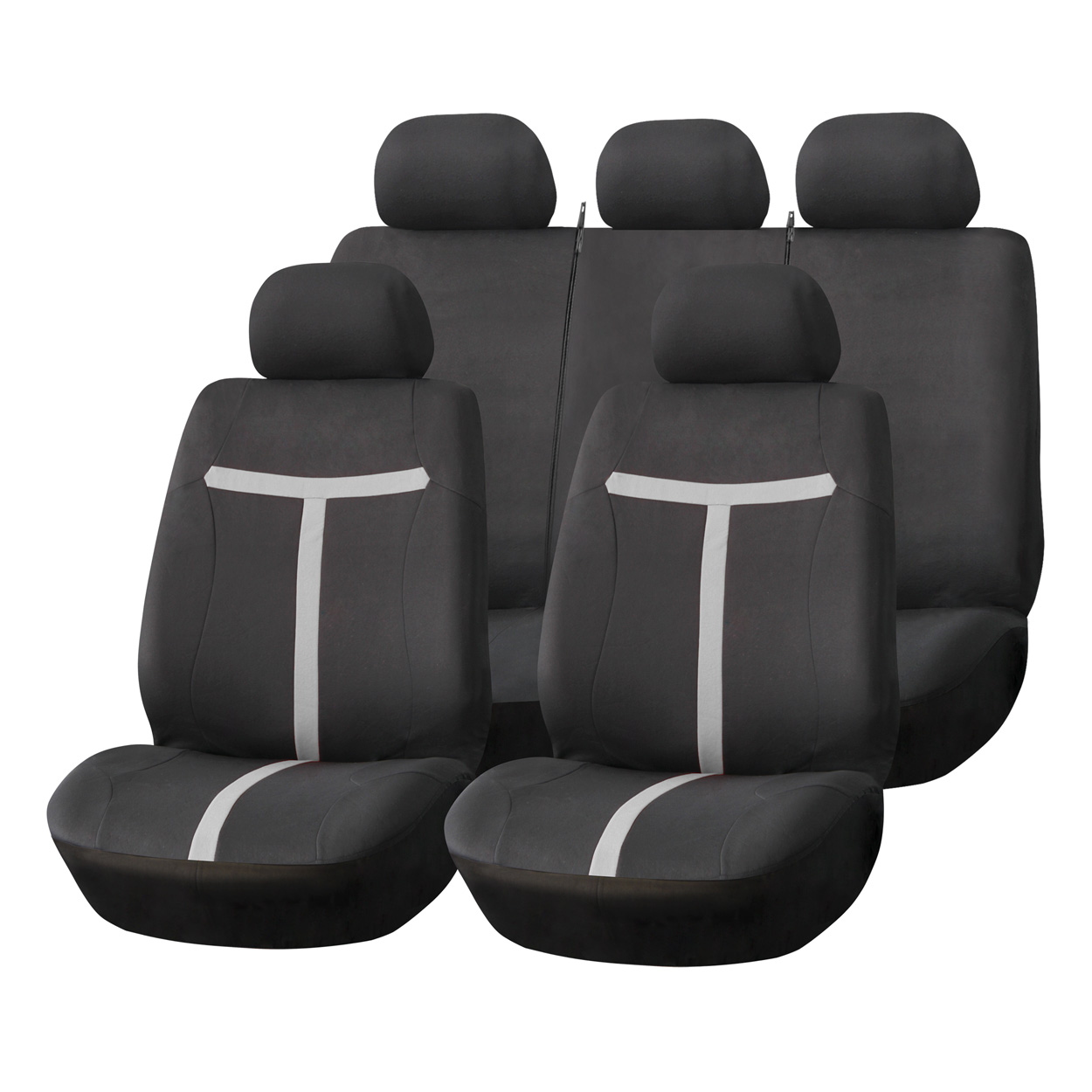 Zestaw 9-częściowy obejmuje pokrowce na dwa fotele przednie, tylną kanapę dzieloną oraz komplet zagłówków. Uniwersalne dopasowanie do większości modeli samochodów osobowych.