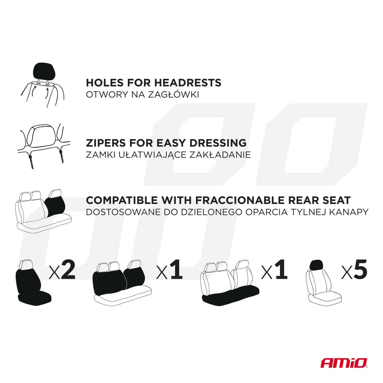 Pokrowce samochodowe na fotele uniwersalne przód tył komplet SC13 AMIO-04613