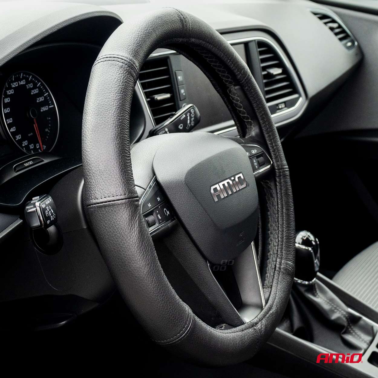 Pokrowiec skórzany nakładka na kierownicę samochodową S 35-37cm AMIO-01764
