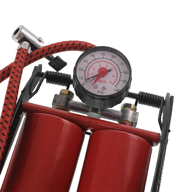 Pompka do pompowania powietrza nożna 2-tłokowa, z manometrem do 7bar