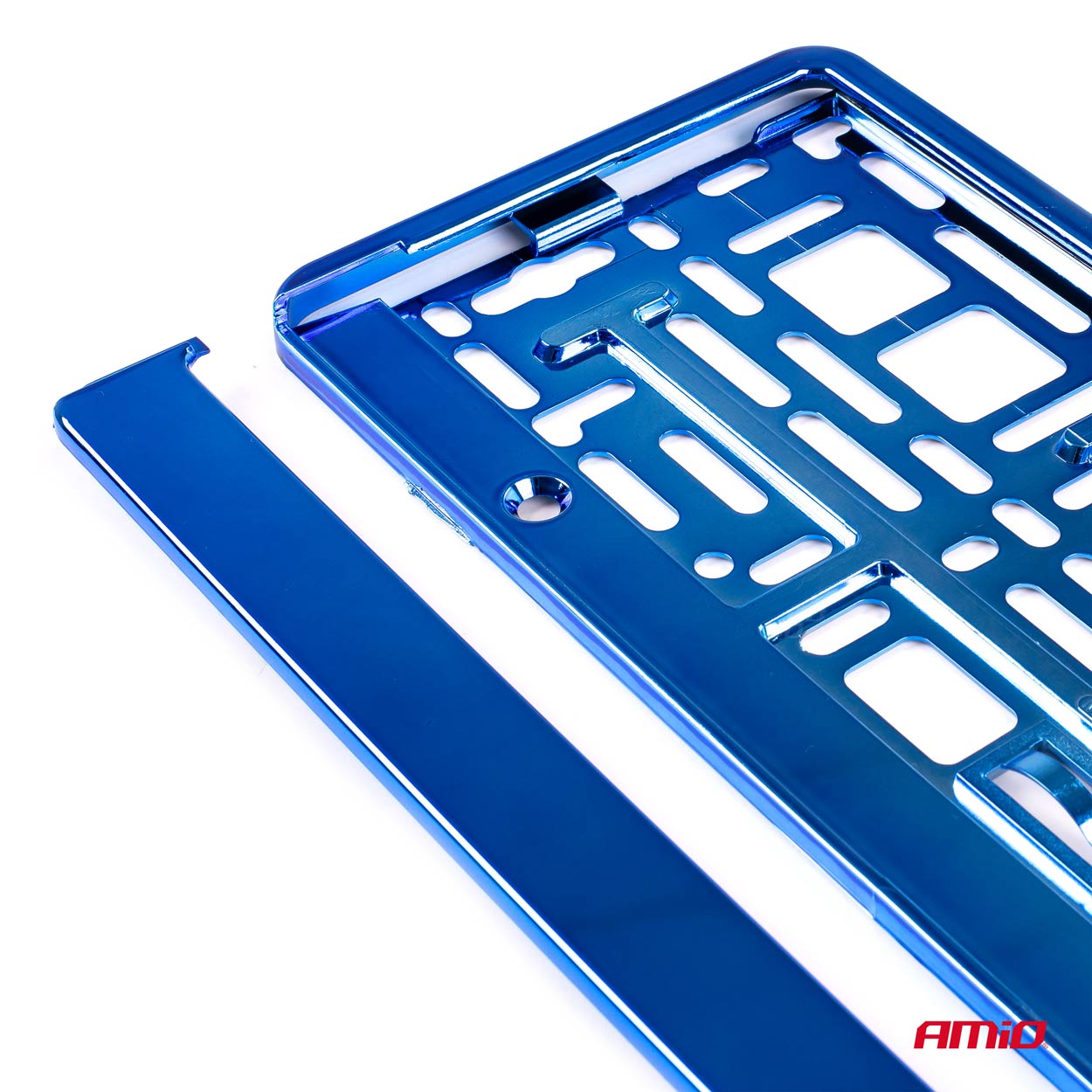 Ramka tablicy rejestracyjnej metalizowana niebieska AMIO-03174