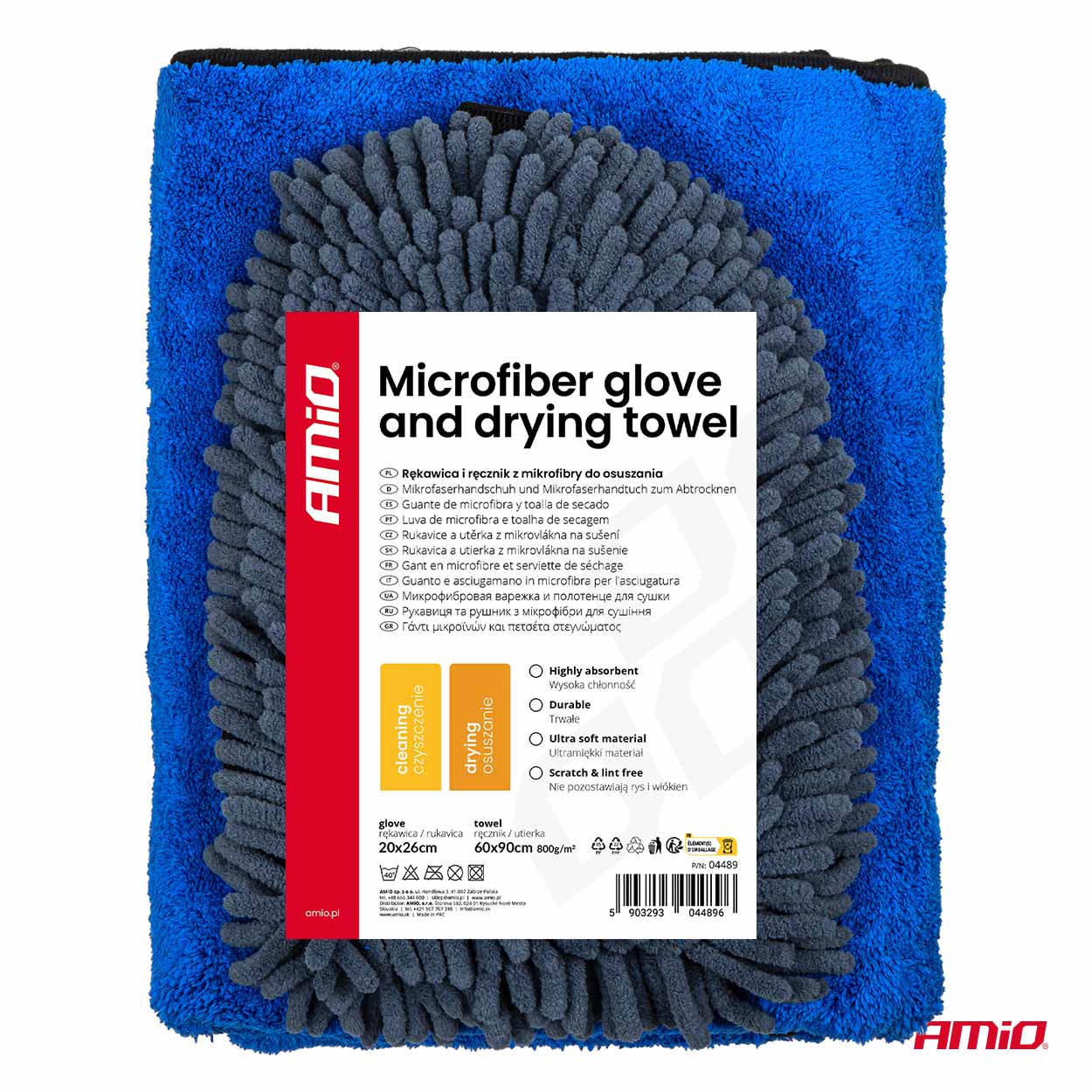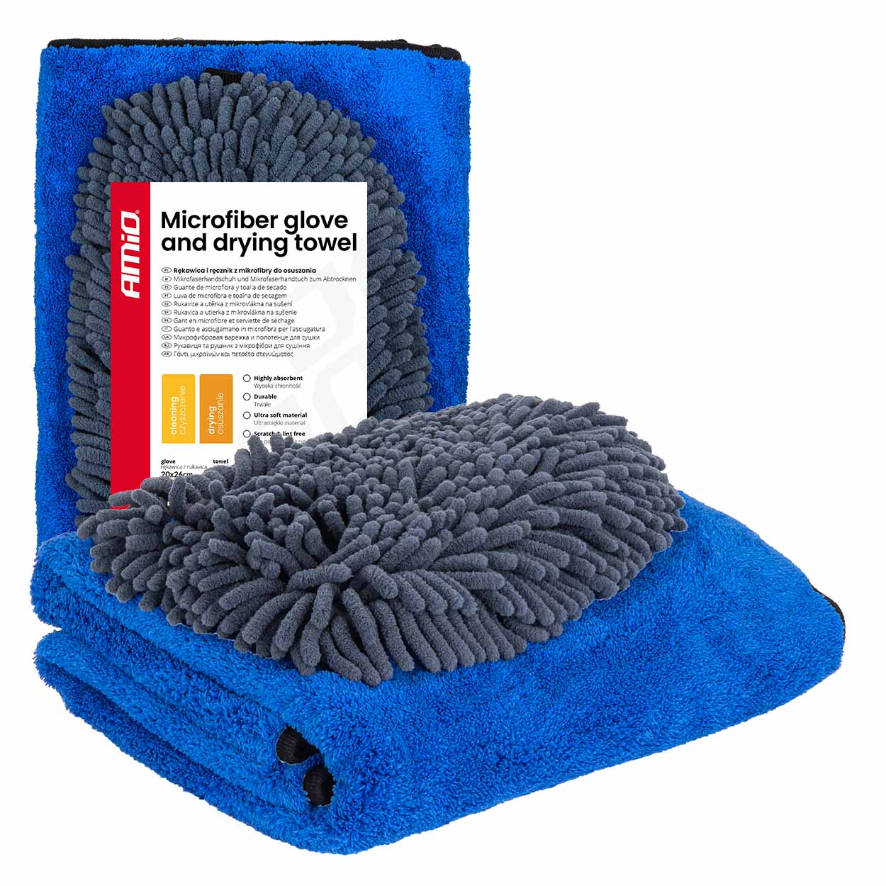 Rękawica z mikrofibry i ręcznik do osuszania samochodu 94/800gsm 20x26/60x90cm AMIO-04489