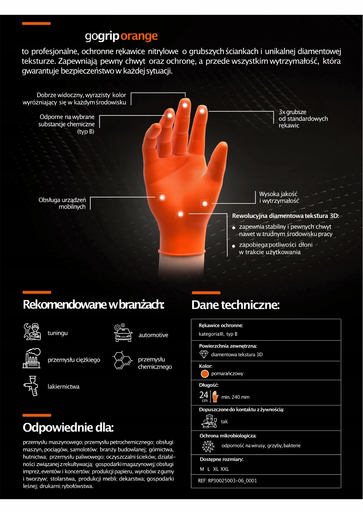 Są 3 razy grubsze od standardowych rękawiczek dostępnych na rynku. Zostały wykonane z trwałego nitrylu. Cechują się wysoką elastycznością, dużą odpornością na rozciąganie oraz unikalną diamentową teksturą 3D, która sprawia, że chwyt jest mocny i stabilny a równocześnie nie ogranicza precyzji. Oryginalna struktura MERCATOR® gogrip sprawia, że można obsługiwać urządzenia mobilne bez zdejmowania rękawiczek oraz zapobiega potliwości dłoni w trakcie użytkowania, co podwyższa komfort pracy, minimalizując ryzyko uszkodzeń skóry dłoni.