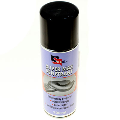 Preparat SUPER MAX to silna mieszanka środków i płynów penetrujących, przeznaczona do poluzowywania w kilka minut zapieczonych, zardzewiałych skorodowanych elementów.