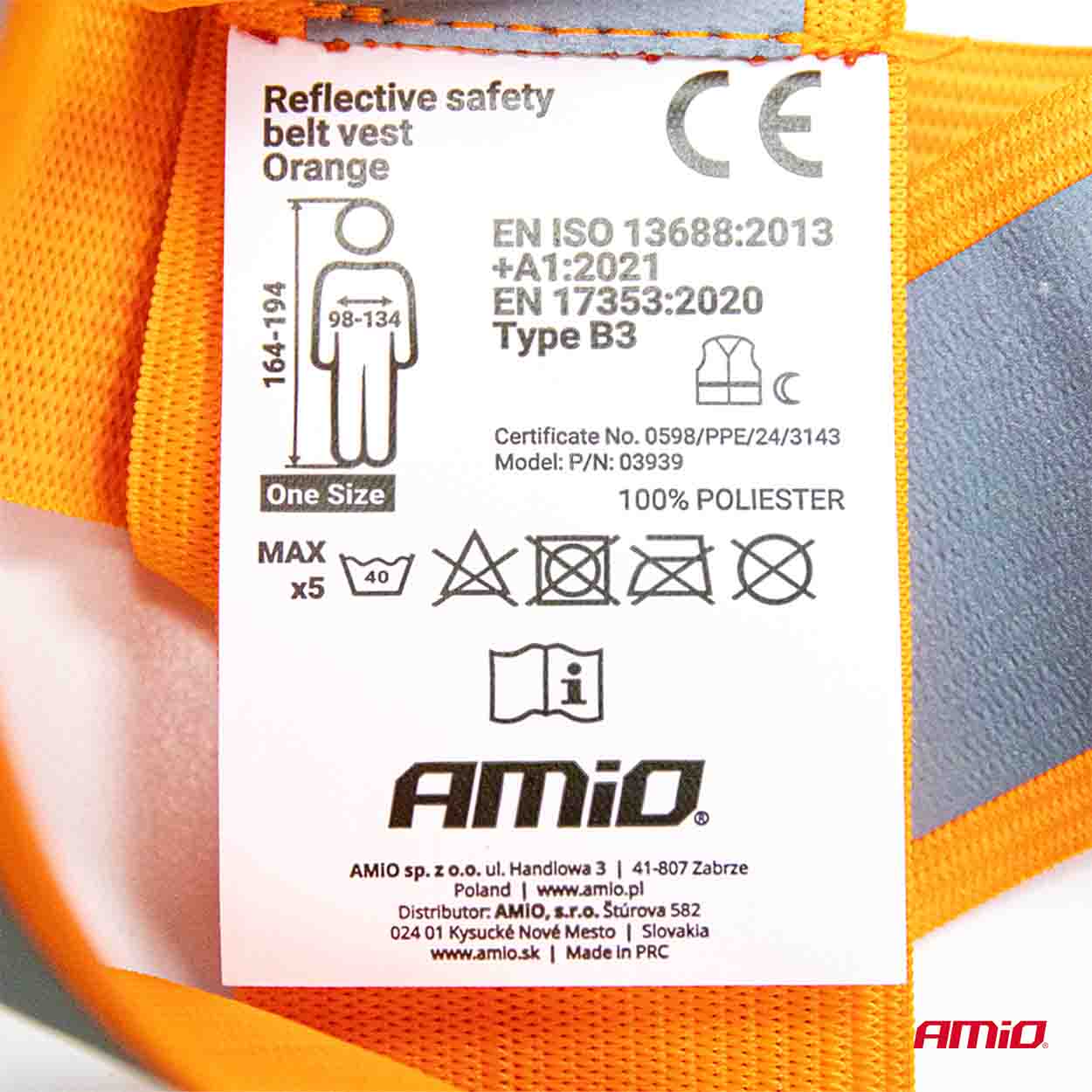 Szelki odblaskowe pomarańczowe kamizelka drogowa odblaskowa AMIO-03939