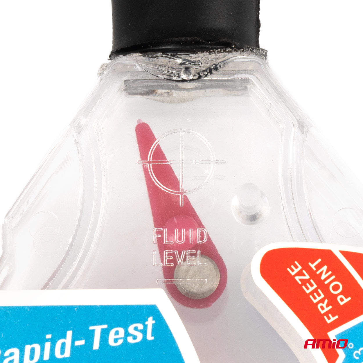 • Kompatybilność z większością płynów chłodniczych – tester sprawdza większość rodzajów płynów chłodniczych dostępnych na rynku, zapewniając wszechstronność.