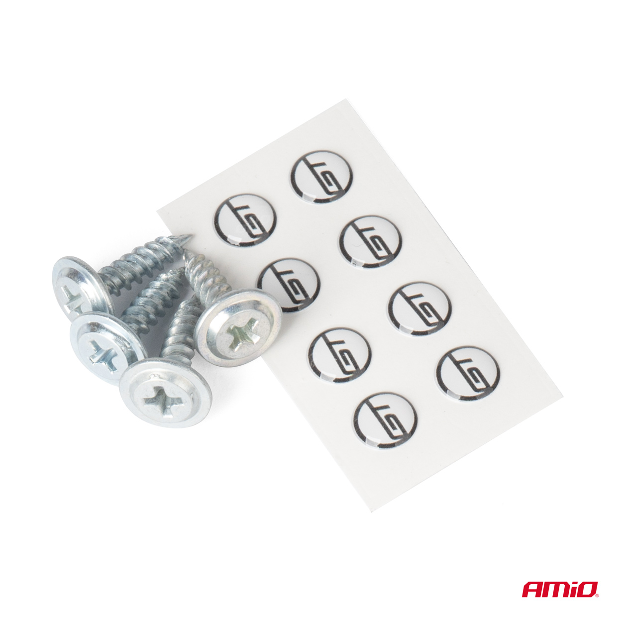 - w zestawie: 2 uchwyty do tablicy rejestracyjnej, 4 śruby montażowe, 8 naklejek antypoślizgowych, instrukcja montażu