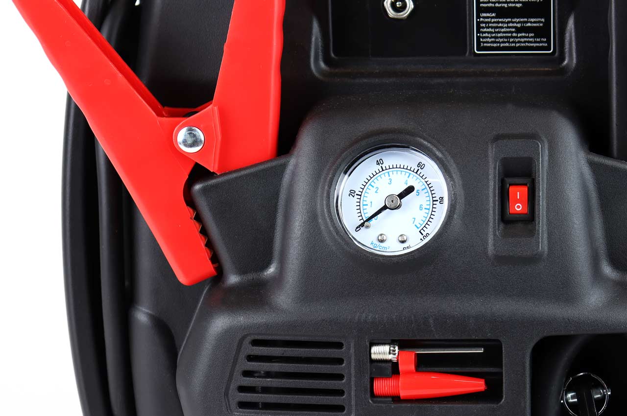 - Jump Starter z baterią o pojemności 17Ah i natężeniu 900A