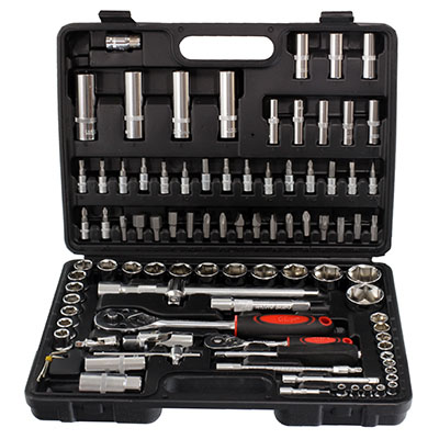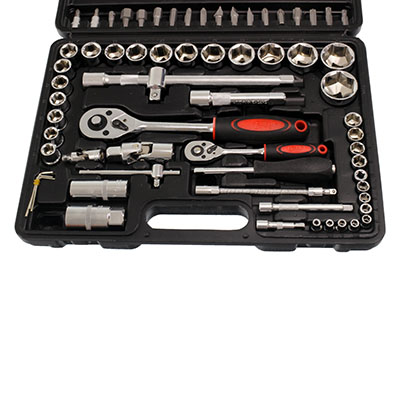 ZESTAW KLUCZY NASADOWYCH 94-ELEM. WALIZKA PLASTIKOWA, ZASTRZASKI PLASTIKOWE