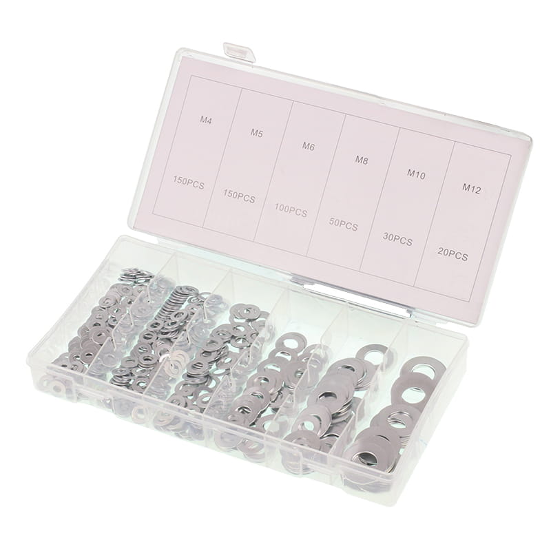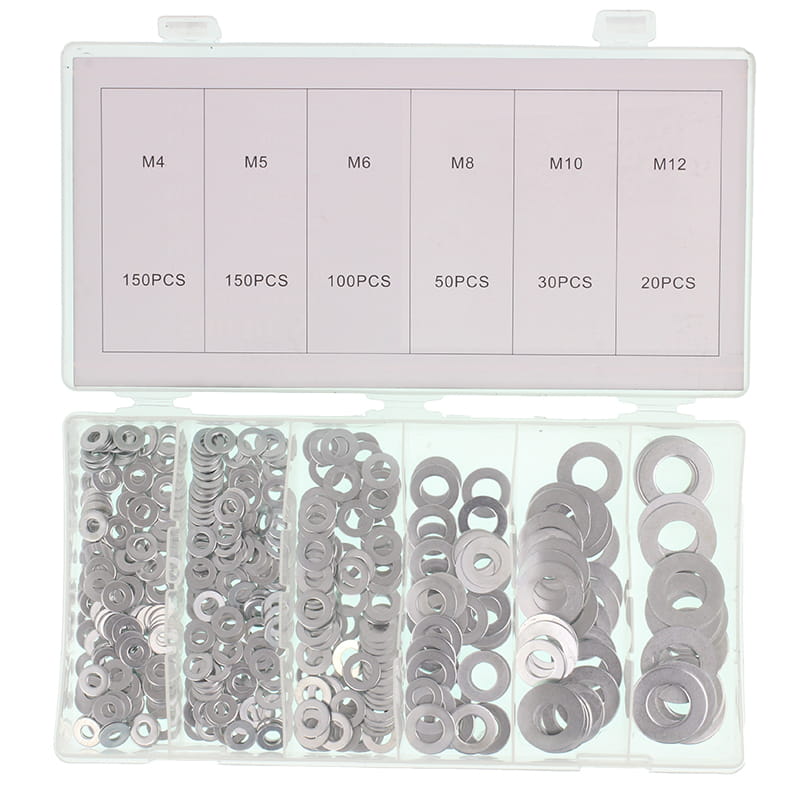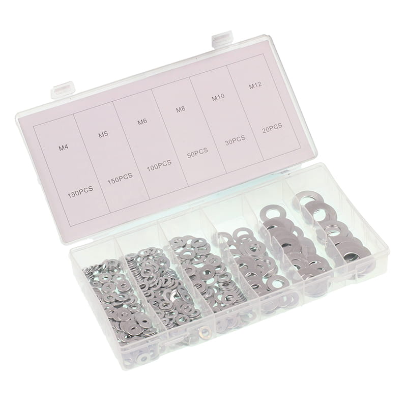 Zestaw podkładek stalowych 500 sztuk, płaskie, różme rozmiary